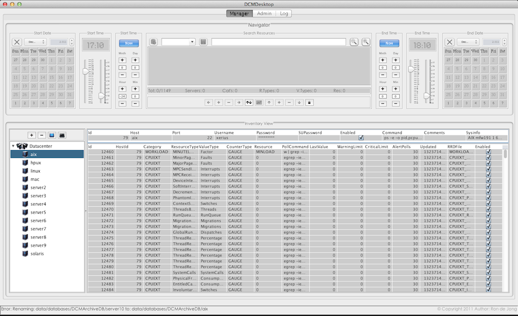 All servers and resources in the inventory will be polled every minute by the DCMPoller (performance data collector) in the background (when turned on) and continuously update the massive numbers of (maintenance free) Historical Data Archives, saved for at least one year. Per server this can be easily up to hundreds of resources to monitor!